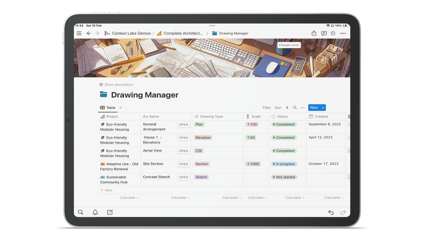 The Drawing Manager allows you to keep track of all your drawings and images across different projects. Not only does this get you into ways of working that will be expected in a professional career, it can be super useful when it comes to putting a portfolio together, and makes sure you never lose a drawing again!