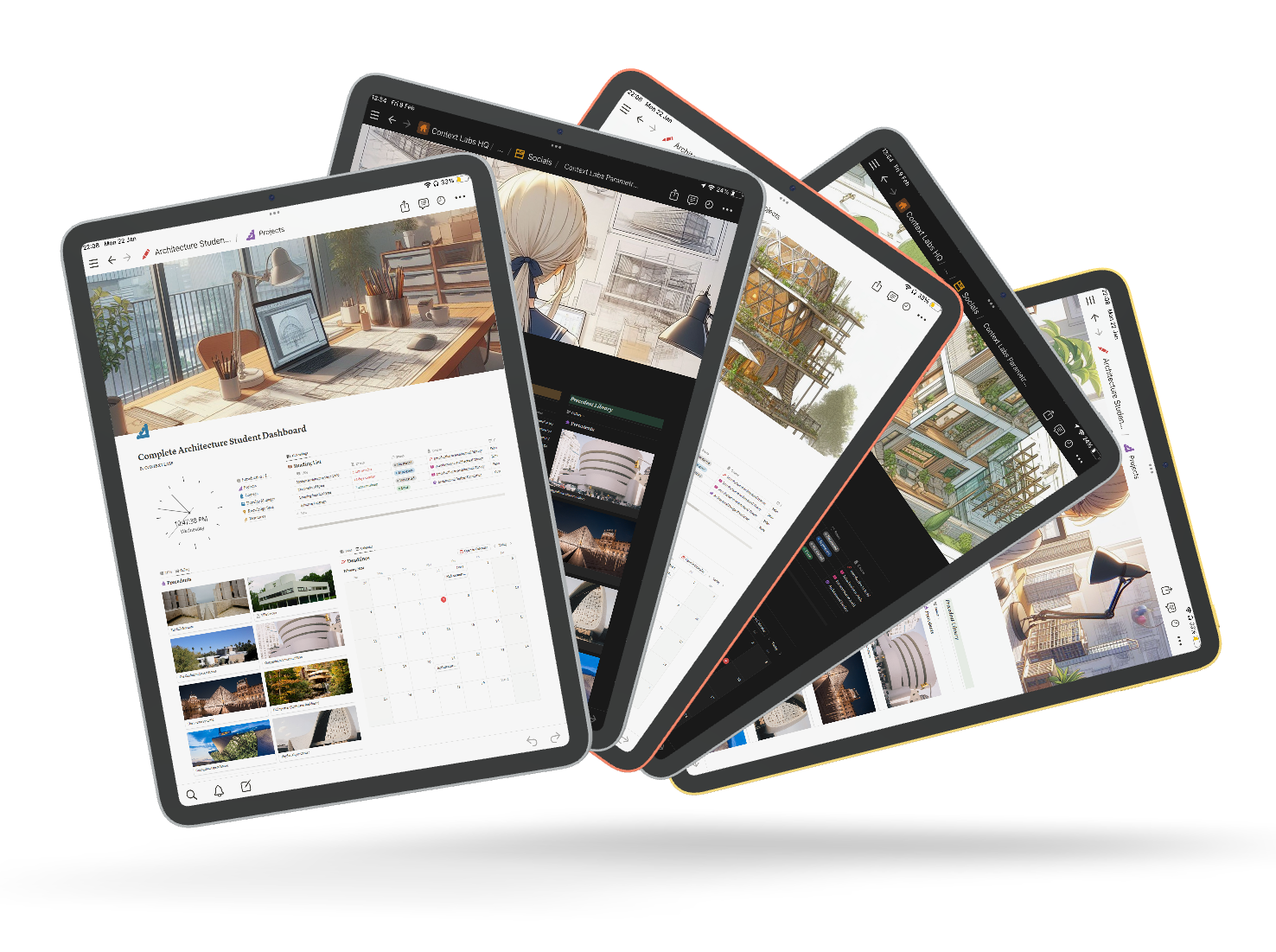 The Archi-Student Dashboard is an all-in-one Notion system that gives you all the tools you need to get organised and be more productive while studying architecture.