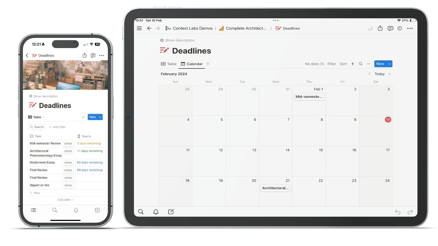 The Archi-Student Dashboard gives you tools to track projects, coursework and deadlines, and store notes, ideas, project feedback and more in a way that is well-organised and easily searchable, making it much easier to stay on top of your work.
