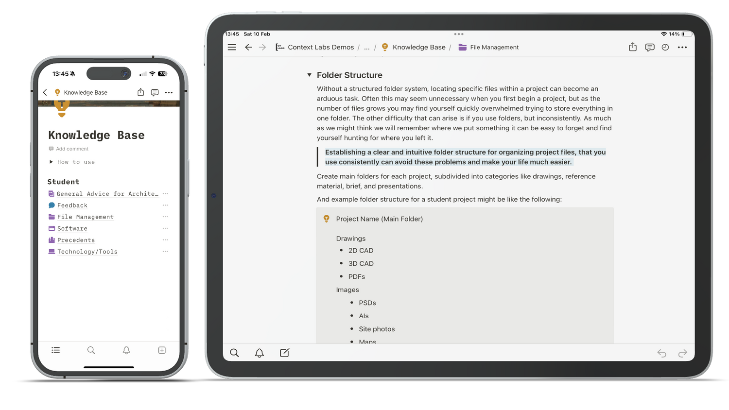 It creates a central space for each of your projects where you can see all your project information, your deadlines, drawings, precedents, recorded feedback, quick notes and to-dos.